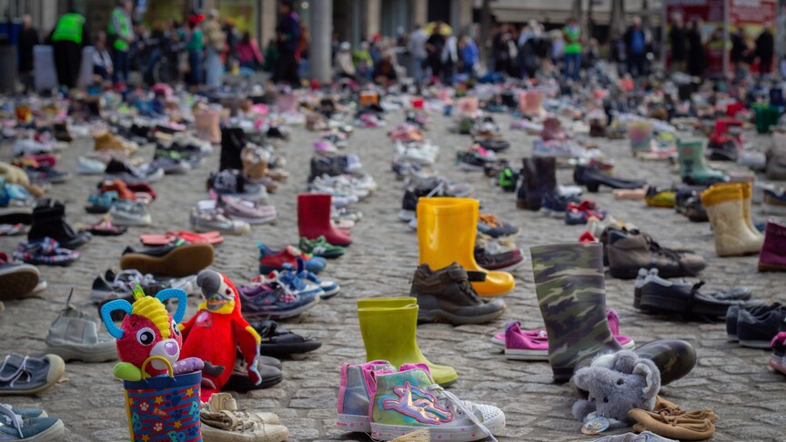 Hiljade cipelica na trgu u Amsterdamu u znak sjećanja na ubijenu palestinsku djecu i novinare
