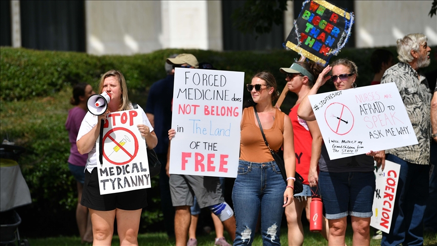 Nekoliko desetina demonstranata u Raleighu u američkoj Sjevernoj Karolini održalo je protest protiv vakcinacije protiv koronavirusa, javlja Anadolu Agency (AA).