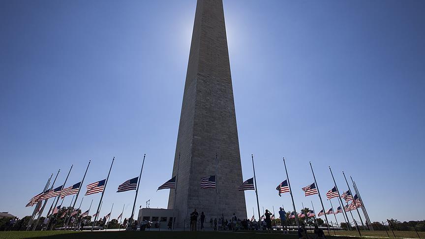The flags will fly at their lowered positions at the White House, federal buildings, military posts and elsewhere until sunset Tuesday.