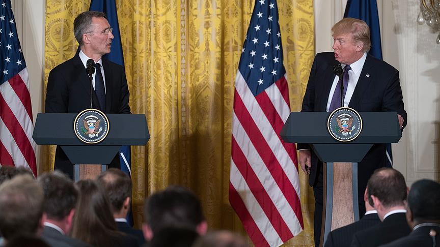 Trump spoke at a news conference alongside NATO Secretary-General Jens Stoltenberg, whom he welcomed to the White House on an official trip.