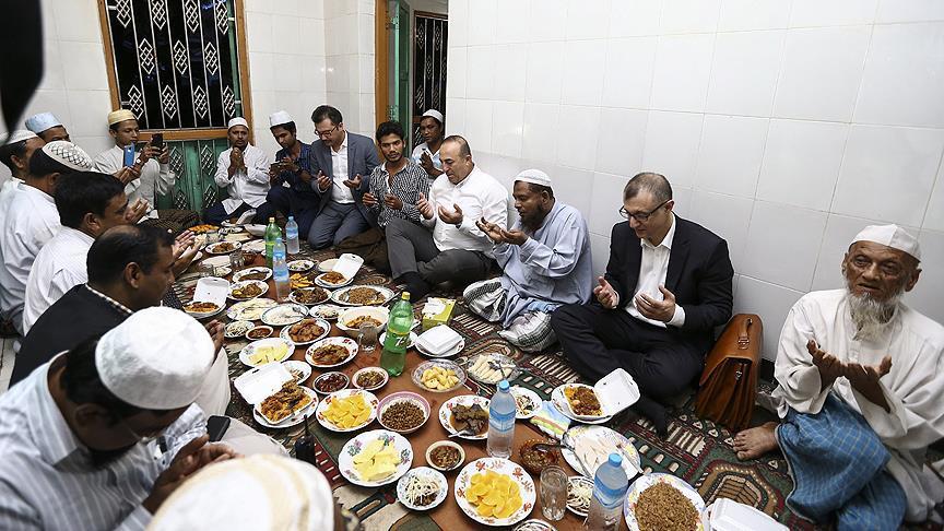 Cavusoglu then hosted an iftar meal with 4,000 Rohingya in Sittwe’s Muslim quarter, Aung Mingalar, which was also attended by Turkey's ambassador to Myanmar, Murat Yavus Ates, and TIKA Rakhine coordinator Abdulahad Kokdag.