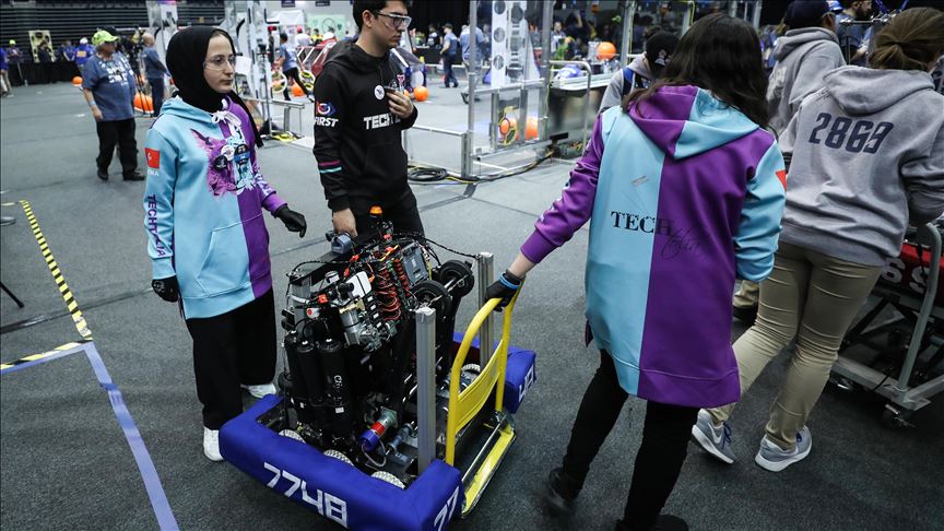 NEW YORK, USA - MARCH 27: A view of 30th First Robotics Competition, large-scale robotics competition which brings together students and mentors to build robots that perform in a competitive but gracious environment against teams from all over the world, in New York, United States on March 27, 2019. Turkey is represented by four high schools; Tenzile Erdogan Girls' Anatolian Imam Hatip High School, Darussafaka High School, Bahcesehir High School for Science and Technology and Adnan Menderes Anatolian High School. ( Atılgan Özdil - Anadolu Agency )