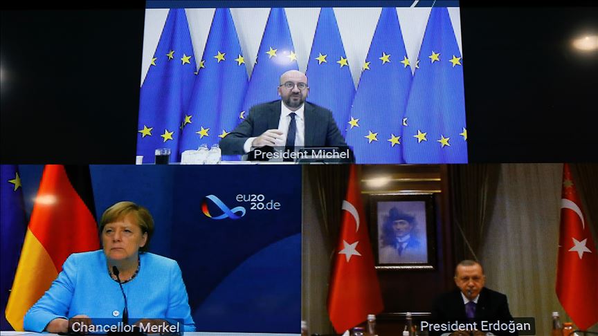 Top leaders from Turkey, Germany, and the European Union on Tuesday held a video meeting focusing on the recent tension in the Eastern Mediterranean, said Turkish officials.