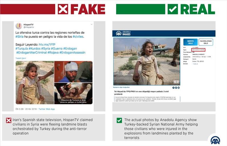 Iran's Spanish state television shared a photo on social media claiming a landmine explosion orchestrated by YPG/PKK terrorists was from Turkey's operation in Syria.