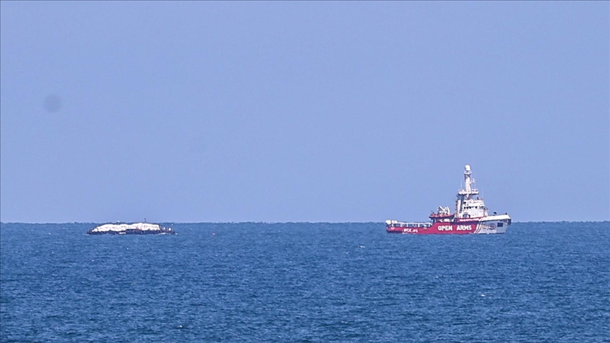 The Open Arms towed a barge with 200 tons of food provided by the US-based World Central Kitchen charity.