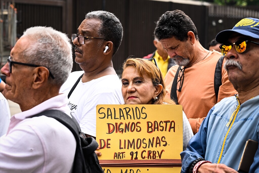 Medical staff, public workers, and retirees gather outside the Supreme Court of Justice (TSJ) to demand decent wages in Caracas, Venezuela, April 15, 2026.
