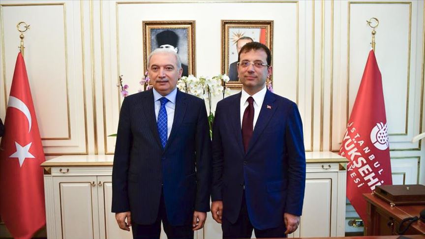 Later, Imamoglu took over the office from his predecessor, Mevlut Uysal, who wished him good luck with his new duties.