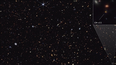 Called EGS8p7 by astronomers, the galaxy is believed to be 13.2 billion years old. The universe is estimated to be 13.8 billion years old, meaning EGS8p7 formed just 600 million years later -- not very long in cosmic terms.