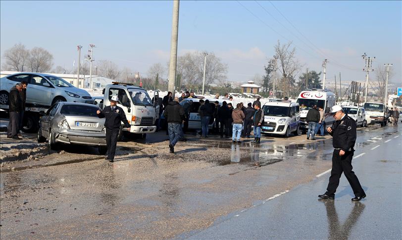 Almost 100 vehicles collided at two points due to foggy weather and icy road conditions in the western province of Bursa on Saturday morning.