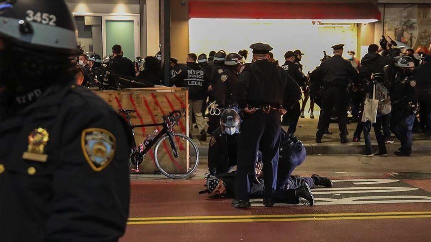 About 50 arrests were made in New York City as protestors started fires and threw items at police.