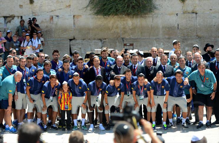 Barcelona football players visited on Sunday the Wailing Wall in Jerusalem and obtained information about the history of the wall.