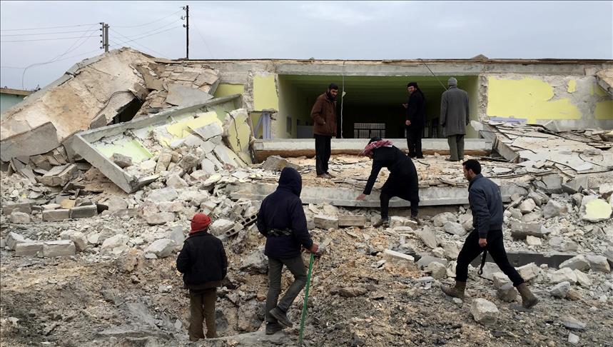 At least 17 people, including eight children, were killed Monday after a Russian jet bombed a school in the town of Ain Jara in Aleppo, local activists said.