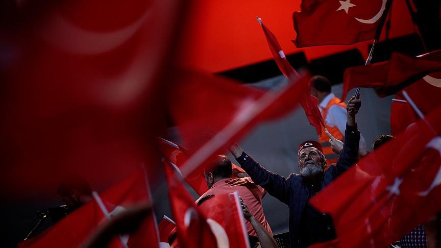 Kentin farklı noktalarından Demokrasi Meydanı'na gelen binlerce vatandaş, ellerindeki Türk bayraklarıyla terör örgütünü ve darbe girişimini protesto etti.