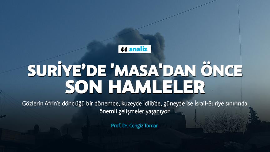 Türkiye’nin Afrin’e yönelik olarak başlattığı Zeytin Dalı harekâtının ardından, Suriye’nin diğer bölgelerinde baş döndürücü gelişmeler yaşanmaya başladı. Sadece son bir haftada yaşanan olaylara bakıldığında bile, Suriye’nin yakın geleceğine yön verebilecek önemli hadiselerin meydan geldiğini görülüyor. Ordumuza ait bir tankın muhtemelen Suriye’deki müttefiklerimizden birinin verdiği tanksavar silahıyla PYD/YPG terör örgütü tarafından vurulduğu, şehitlerimizin olduğu ve gözlerimizin tabii olarak Afrin’e döndüğü bir dönemde, kuzeyde İdlib’de, güneyde ise İsrail-Suriye sınırında önemli gelişmeler yaşanıyor. Bütün bunlar, Suriye savaşında sona yaklaşılırken, siyasi çözüm için pazarlıkların yapılacağı masa kurulmadan hemen önce, eldeki kozları mümkün olduğunca artırma çabası olarak yorumlanmalı.