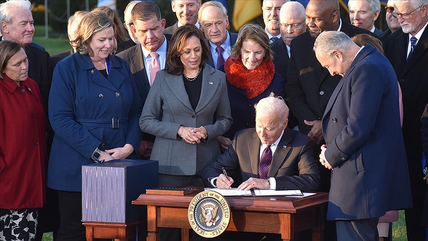 Altyapı paketinin imza töreni, ABD'de enflasyonun 31 yılın zirvesine ulaştığı ve Biden'a olan siyasi desteğin azaldığı bir dönemde geldi.