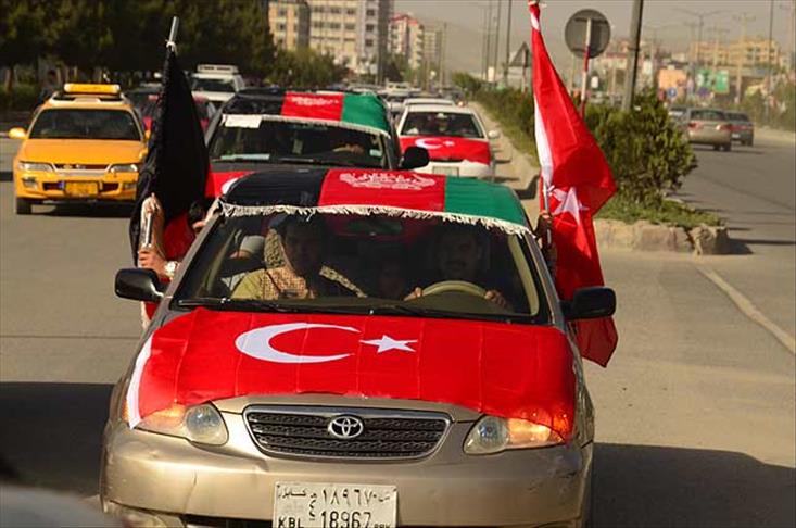 Gösteriye katılanlar, daha sonra araçlarının üzerine Türk ve Afganistan bayraklarını asarak konvoy halinde Kabil'i dolaştı.