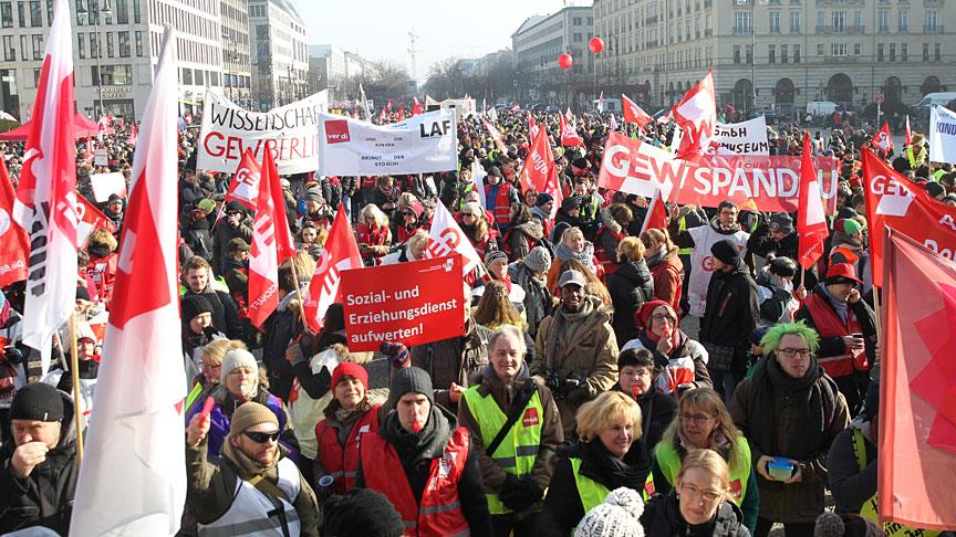 İşverenlerle toplu sözleşme görüşmelerini sürdüren Ver.di’den yapılan açıklamada, Almanya'da kamu işçilerinin, 15 ve 16 Nisan tarihlerinde Potsdam’da yapılacak toplu iş sözleşmesi üçüncü tur müzakerelerinden önce uyarı grevlerinin genişletildiği ve 10 Nisan’da bütün eyaletlerde yaygın iş bırakma eylemlerinin olacağı ifade edildi.