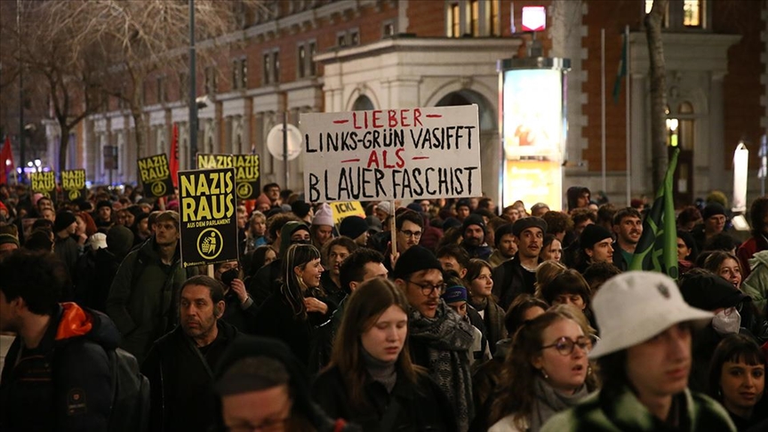 Viyana Üniversitesi önünde toplanan göstericiler, "Nazizm’e hayır", "Aşırı sağa karşı omuz omuza" yazılı pankartlar taşıdı.