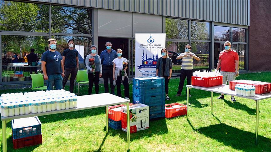 Belçika'nın Anvers kentinde, Diyanete bağlı Berchem Selimiye Camii yönetimi, hastanelerdeki sağlık çalışanlarına, polislere, yaşlı bakımevlerine ve sokaklardaki kimsesizlere 3 bin 700 kap sıcak yemek dağıttı.