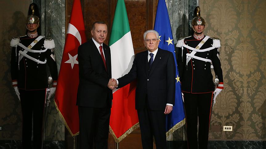 Daha sonra, Erdoğan, İtalya Başbakanı Paolo Gentiloni tarafından resmi törenle karşılandı.