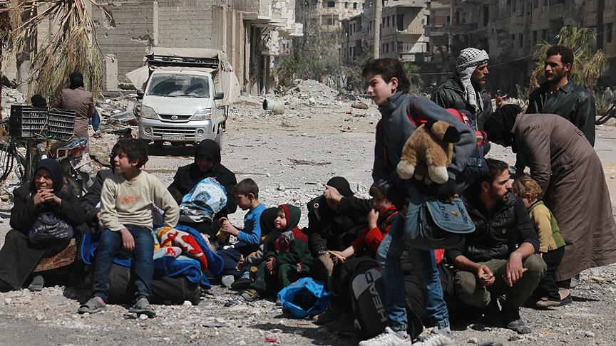 Muhaliflerin kontrolündeki Doğu Guta'da 400 bin kişi 5 yıldır abluka altında yaşıyordu. Suriye rejiminin Rusya'nın desteğiyle son aylarda yoğun saldırılarla bölgenin yarıdan fazlasını ele geçirmesiyle on binlerce kişi rejim kontrolündeki alanlara göç etmek zorunda kaldı.