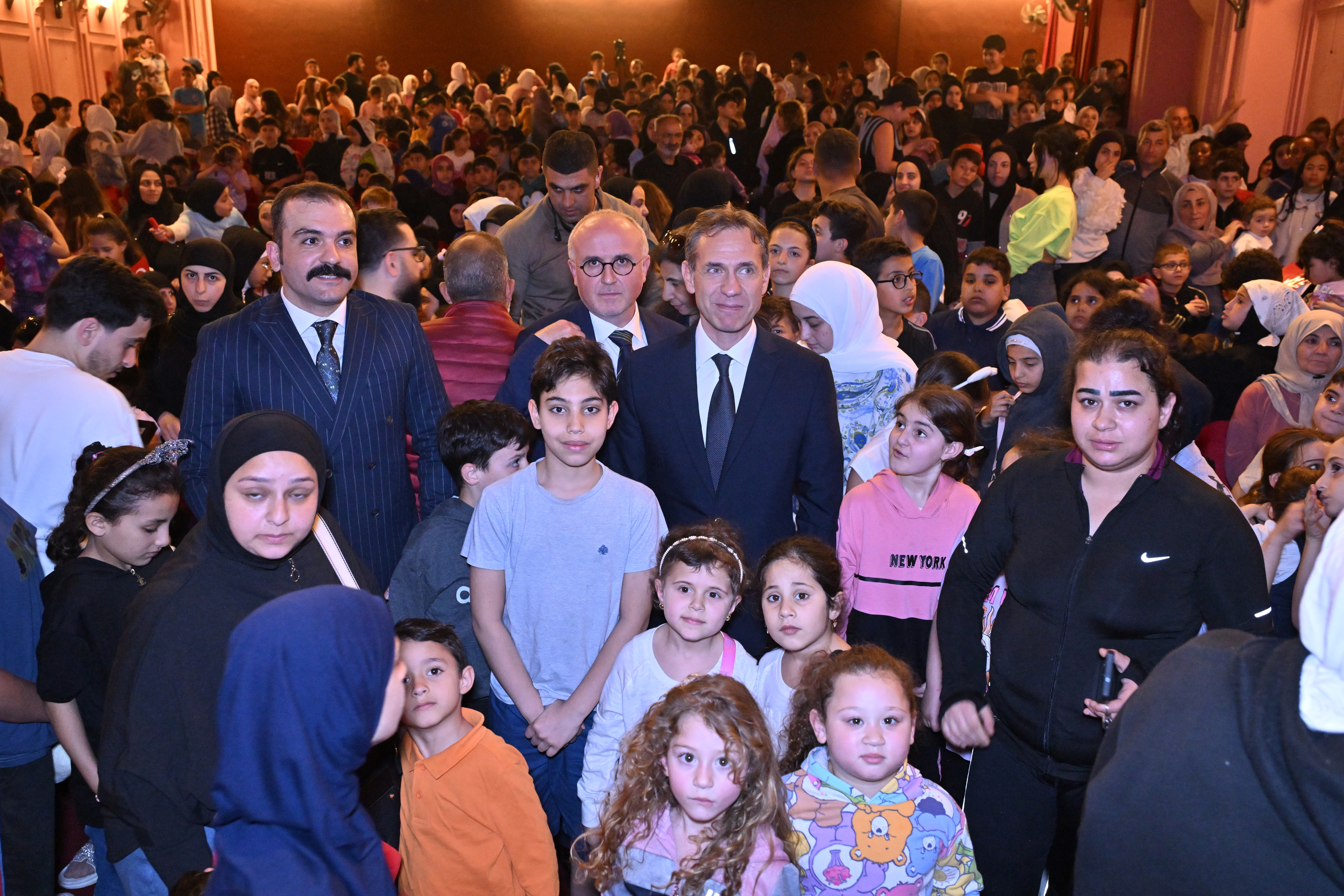Yerinden edilenlere kapılarını açan Beyrut'taki Lübnan Ulusal Tiyatrosu’nda gerçekleştirilen etkinliğe, Türkiye'nin Beyrut Büyükelçisi Murat Lütem, YEE Beyrut Koordinatörü Mustafa Aydoğdu ve 600'den fazla çocuk katıldı.