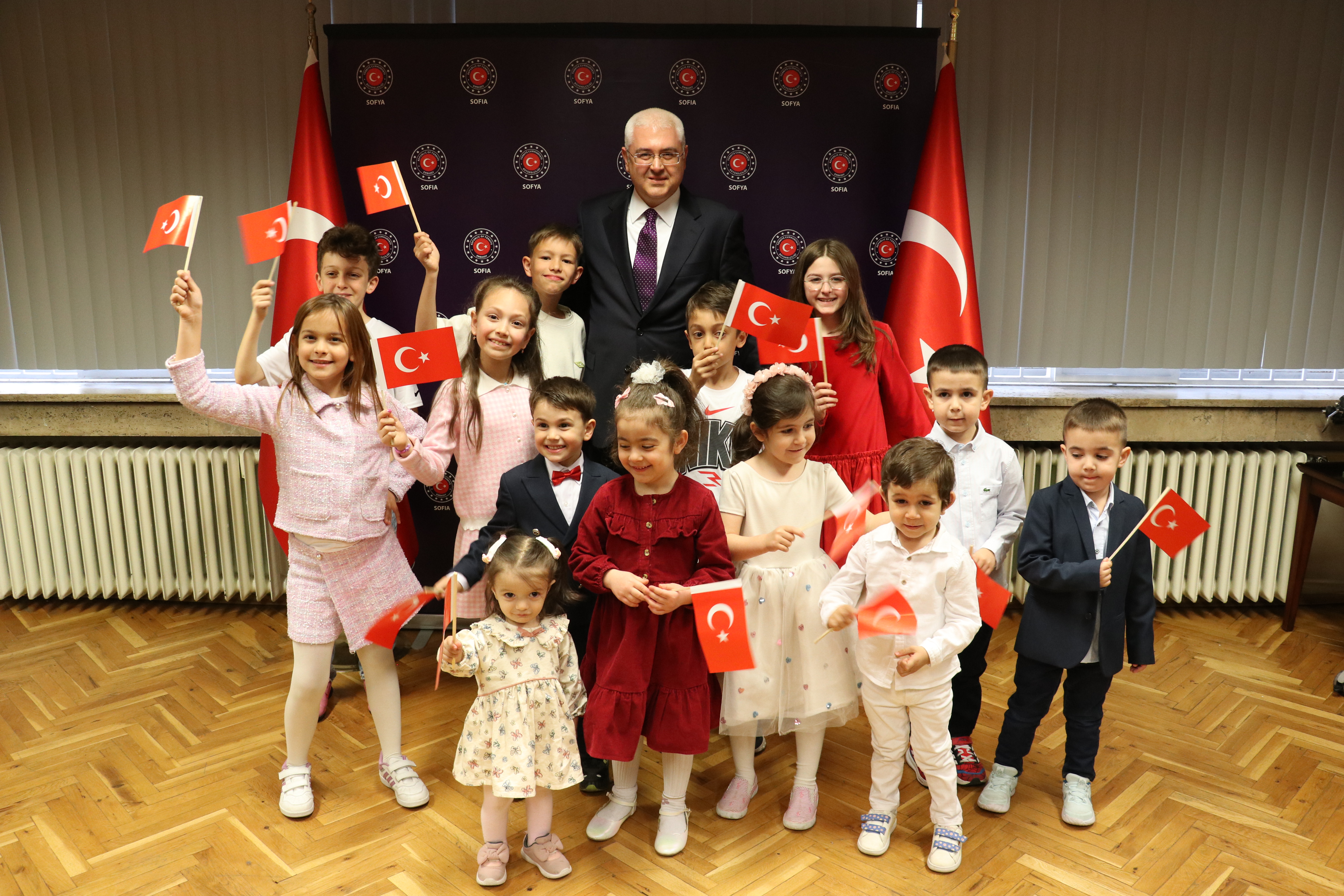 Türkiye'nin Sofya Büyükelçisi Mehmet Sait Uyanık, 23 Nisan Ulusal Egemenlik ve Çocuk Bayramı dolayısıyla makam koltuğunu Bulgaristan'daki Türk toplumundan çocuklara devretti.