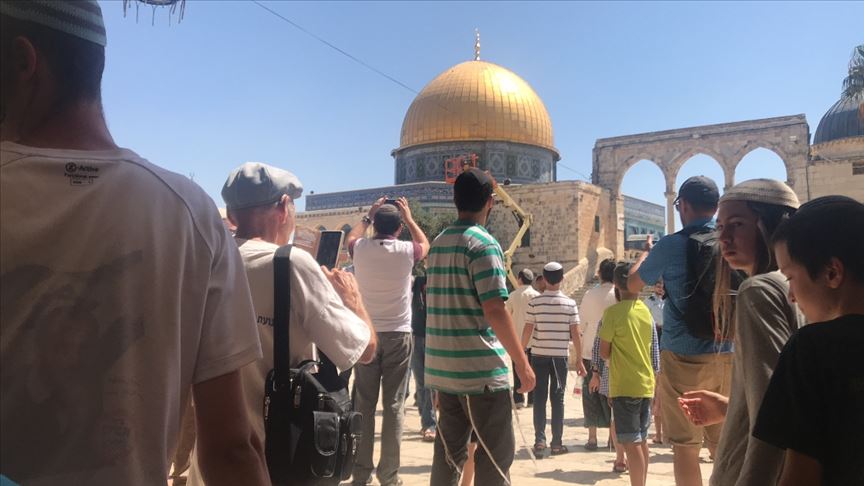 İsrail polisinin eşlik ettiği onlarca fanatik Yahudi, işgal altındaki Doğu Kudüs'ün Eski Şehir bölgesinde bulunan Mescid-i Aksa'nın avlusuna girdi.