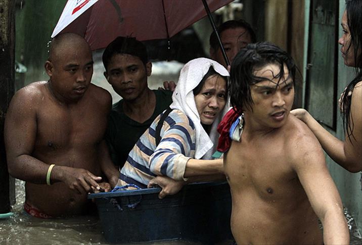 Filipinler'in başkenti Manila'nın deniz seviyesinin altında kalan alanlarıyla çevre bölgelerin sular altında kalmış olması nedeniyle kentteki okul ve iş yerleri kapandı.