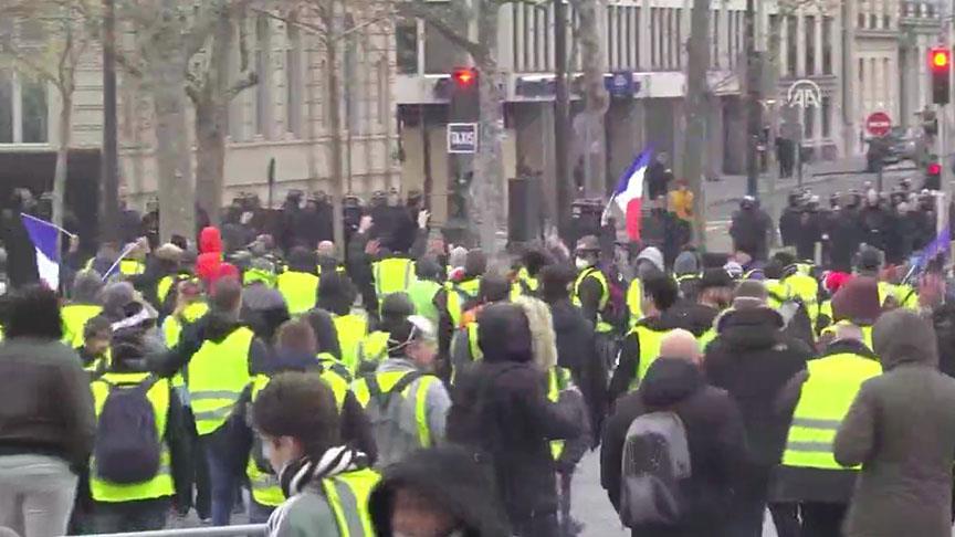 Fransa'da akaryakıt zamlarını protesto eden "Sarı yelekliler”, başkent Paris'in Champs-Elysees Caddesi'nde gösteri düzenliyor.