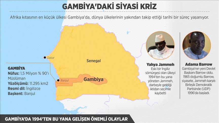 Eski Devlet Başkanı Yahya Jammeh'in kaybettiği ve aralık ayında düzenlenen seçimle başlayan, Batı Afrika Devletleri Ekonomik Topluluğunun (ECOWAS) devreye girmesiyle devam eden siyasi krizin ardından gözler, eski İngiliz sömürgesi Gambiya ya da resmi adıyla Gambiya İslam Cumhuriyeti'ne çevrildi.