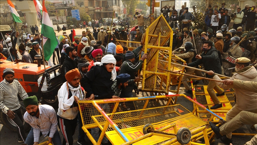 Çiftçilerin, Yeni Delhi'de barikatları aşarak tarihi Kızıl Kale'ye girmesi üzerine polisin cop ve göz yaşartıcı gazla müdahalesi sırasında oluşan kargaşada 1 çiftçi yaşamını yitirdi, 80’den fazla polis ise yaralandı.