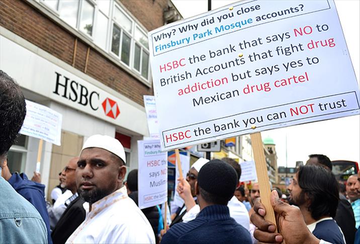 İngiltere'nin önde gelen bankalarından HSBC'nin ülkedeki bazı Müslüman müşterilerinin banka hesaplarını kapatma kararı başkent Londra'da protesto edildi.