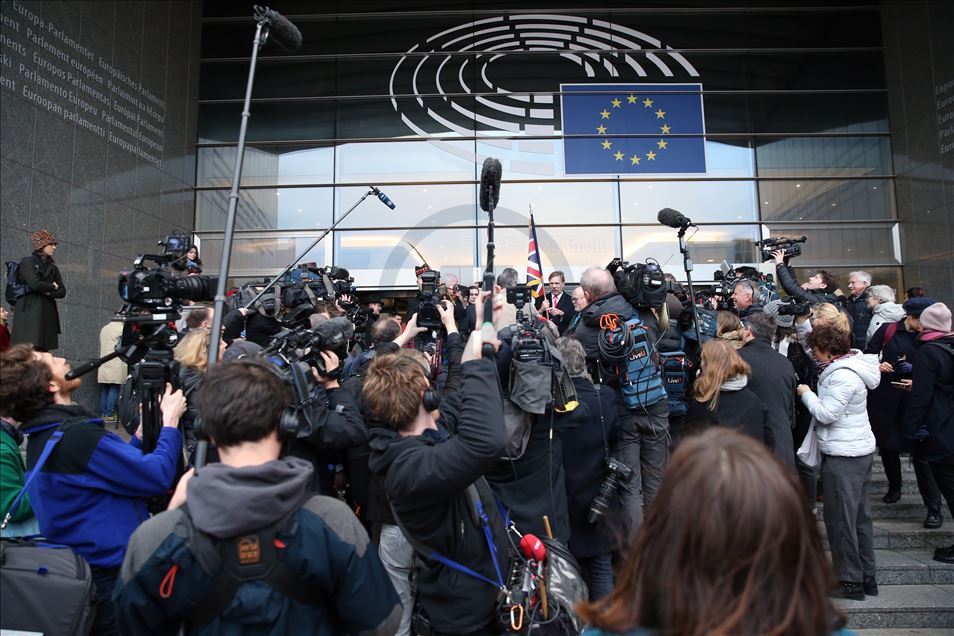 İngiltere'nin Avrupa Birliği'nden (AB) resmi olarak ayrılmasına saatler kala, İngiliz parlamenterler Brüksel'deki Avrupa Parlamentosu (AP) binasından çıkışlarını yapmaya başladı. ( Dursun Aydemir - Anadolu Ajansı )