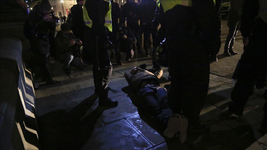 İngiliz Parlamentosunu 5 Kasım 1605'te havaya uçurmayı planlayan ancak başarısız olan İngiliz asker Guy Fawkes Gecesi kapsamında yapılan gösteri öncesi polisin meydanda önlem aldığı görüldü.