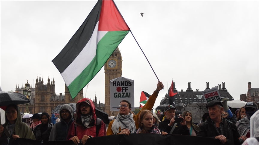 Anlık gelişmeler için AA Canlı Westminster Köprüsü üzerinden Thames Nehri'nin kuzeyinden güneyine geçen göstericiler, "Özgür Filistin", "Nehirden denize Filistin özgür olacak", "(İngiltere Başbakanı) Keir Starmer saklanamazsın seni soykırımla yargılayacağız" sloganları attı.