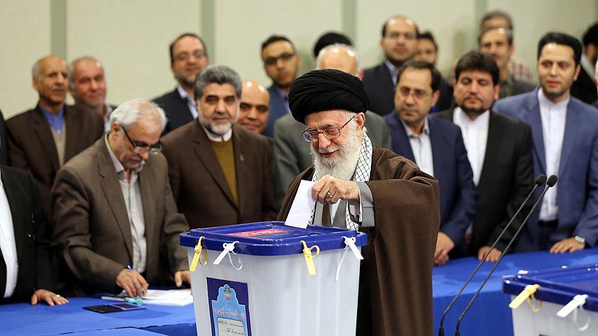 Halka, seçimlere katılması yönünde her fırsatta çağrıda bulunan dini lider Ali Hamaney oyunu başkent Tahran'daki bir seçim merkezinde kullandı.