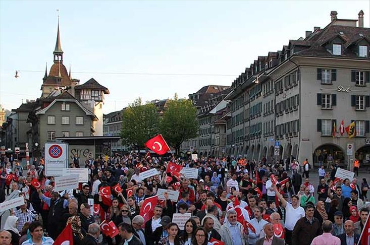 İsviçre'nin başkenti Bern'de Türk sivil toplum örgütleri tarafından düzenlenen "Savaştan Doğan Dostluk ve Barış" temalı mitinge yüzlerce kişi katıldı.