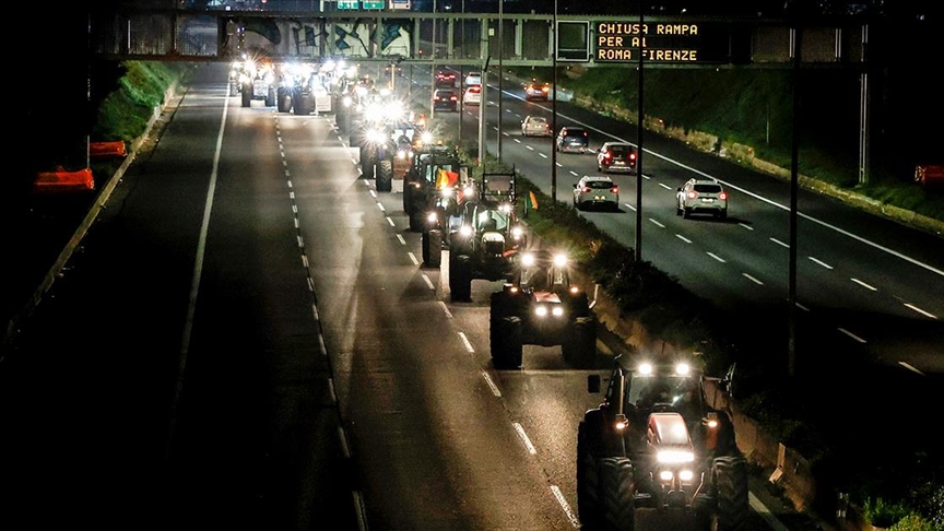 Ülke genelinde geçen haftadan bu yana süren protestolarını dün sabah sembolik konvoylarıyla Roma kent merkezine taşıyan çiftçiler, traktörleriyle büyük konvoylarını ise gece saatlerinde gerçekleştirdi.