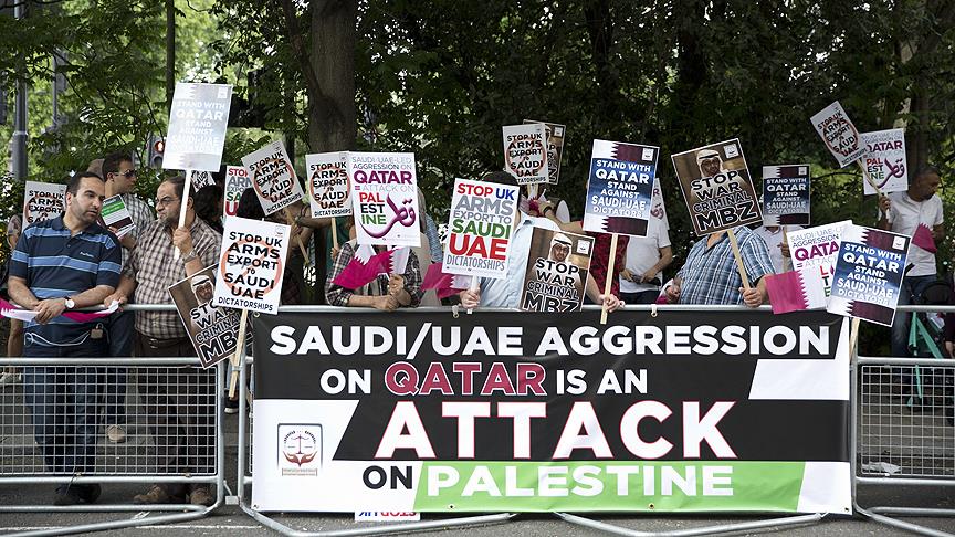 Bazı Arap ülkelerinin Katar'a uyguladığı diplomatik abluka, İngiltere'nin başkenti Londra'da düzenlenen gösteriyle protesto edildi.