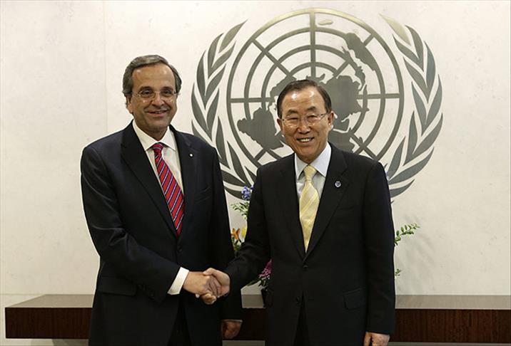 BM Genel Sekreteri Ban Ki-mun, Yunanistan Başbakanı Antonis Samaras'la BM Genel Merkezi'ndeki makamında bir görüşme yaptı.