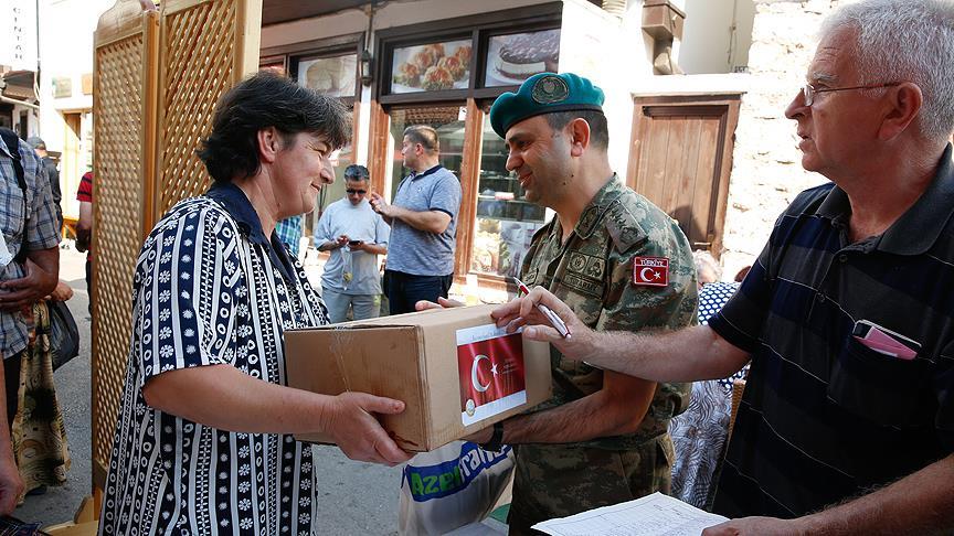 Saraybosna'da altışar kiloluk paketleri 100 aileye ulaştıran Türk askerleri, ülke genelinde de 7 farklı şehirde ihtiyaç sahiplerine bine yakın kurban eti paketi dağıttı.