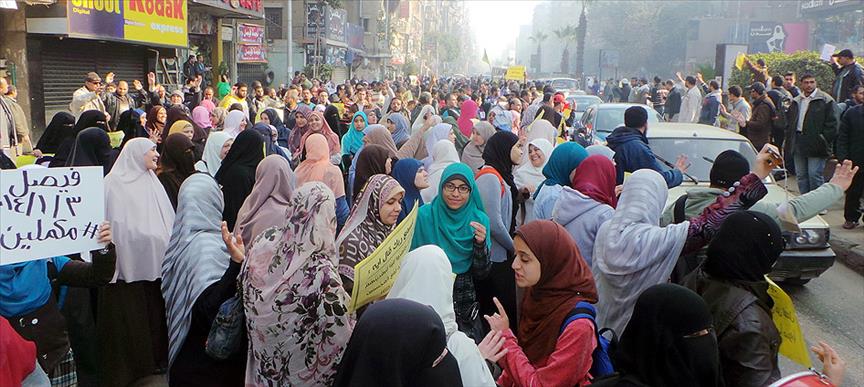 Medinet Nasr'da Ezher Üniveristesi'nin kız öğrencileri de protesto eylemlerine devam ediyor.