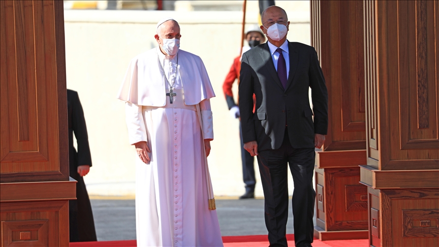 Cumhurbaşkanı Berhem Salih, Papa’yı düzenlenen resmi törenle karşıladı. Törenin ardından Salih ve Papa’nın baş başa görüşmesi başladı.