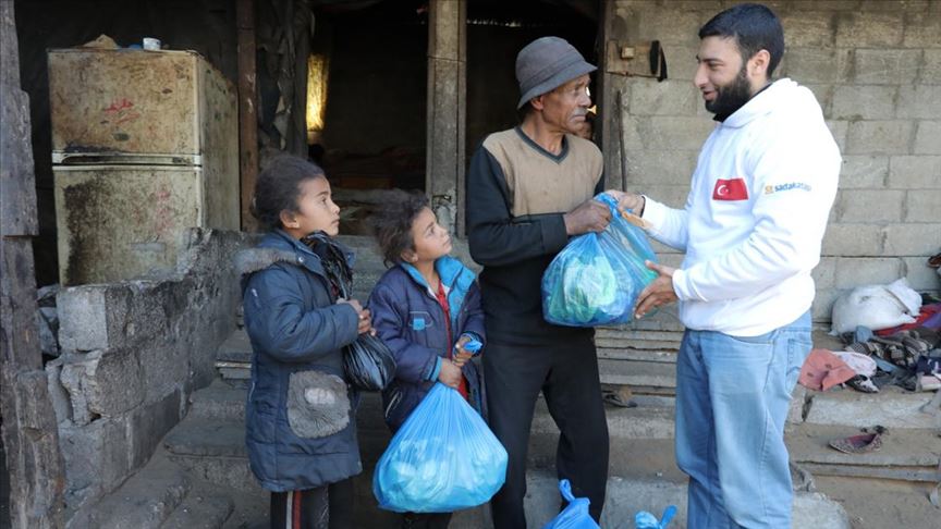 Açıklamada, Gazze'nin yoksul semtleri Al Zahra, Jabalia, Han Yunus ve Maghazi'de yaşayan ihtiyaç sahibi bin aileye domates, salatalık, patates, soğan, biber, patlıcan ve piliçten oluşan gıda paketinin dağıtıldığı bildirildi.