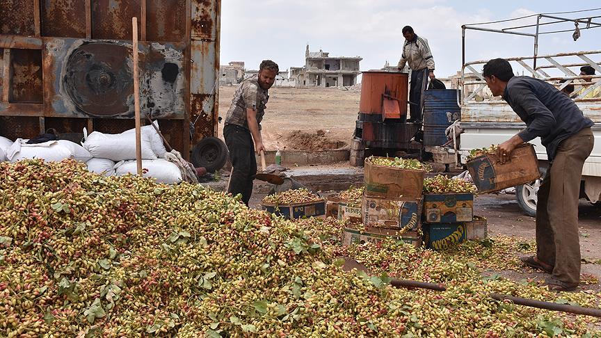 Türk Silahlı Kuvvetlerinin (TSK) ateşkes gözlem görevi yürüttüğü İdlib'de halk, huzur ve güven içinde ilk Antep fıstığı hasadını yapıyor.