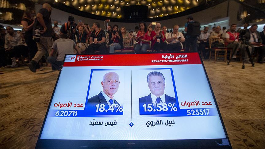 Cumhurbaşkanı seçiminde yüzde 18,4 oy oranıyla bağımsız aday Anayasa Profesörü Kays Said ve yüzde 15,6 oy oranıyla tutuklu medya patronu Nebil Karvi'nin ikinci tur için yarışacağı açıklanmıştı.