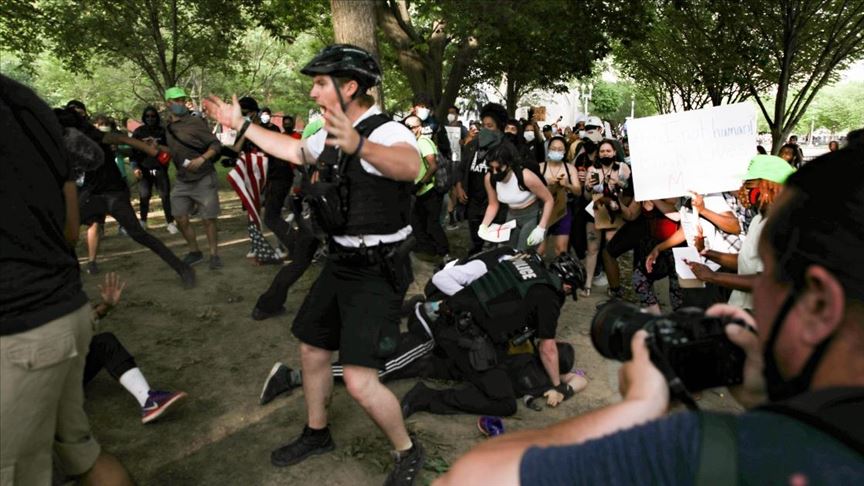 Polis, "adalet yoksa huzur yok" sloganları atan yüzlerce göstericinin, Beyaz Saray'ın önündeki "La Fayette" parkındaki demir parmaklıklara yaklaşmasına izin vermeyince arbede yaşandı.