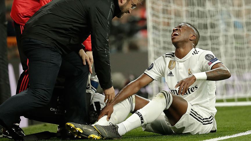 İspanya Birinci Futbol Ligi (La Liga) takımlarından Real Madrid'den yapılan açıklamaya göre, Ajax'a 4-1 yenildikleri UEFA Şampiyonlar Ligi son 16 turu rövanş maçında sakatlanan Vinicius Junior'ın sağ ayak bileğindeki tibiofibular eklemi bağlarında yırtık tespit edildi.