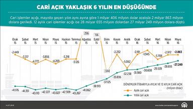 Ekonomi Bakanı Nihat Zeybekci, geçen yıl ilk 6 ayda 24,5 milyar dolar olan cari işlemler açığının, bu yılın aynı döneminde 22,7 milyar dolara gerilediğini belirterek, bunun ülke ekonomisi için oldukça olumlu bir gelişme olduğunu bildirdi.